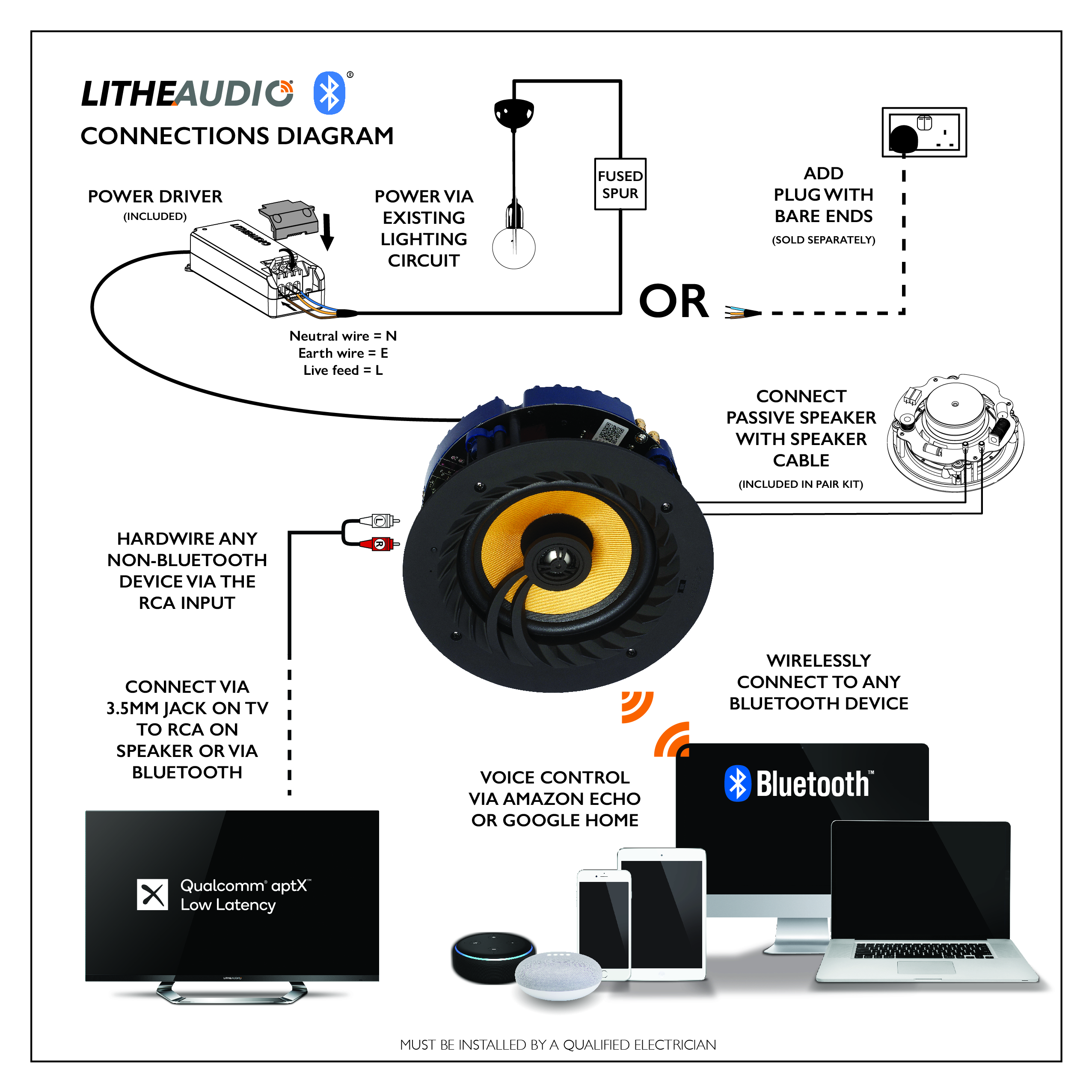 Fully compatible with Amazon Echo and Google Home devicesConnect to your TV via Bluetooth