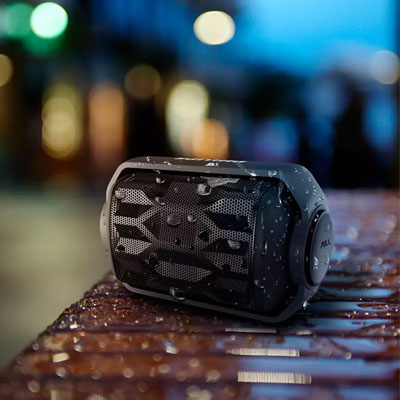 This rugged and water resistant portable wireless speaker can go wherever you want to go, in and out, up and down, rain and shine. It sounds as powerful as it is tough.